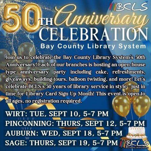 Through the month of September, the Bay County Library System celebrates its 50th Anniversary with special events at four of its branches.